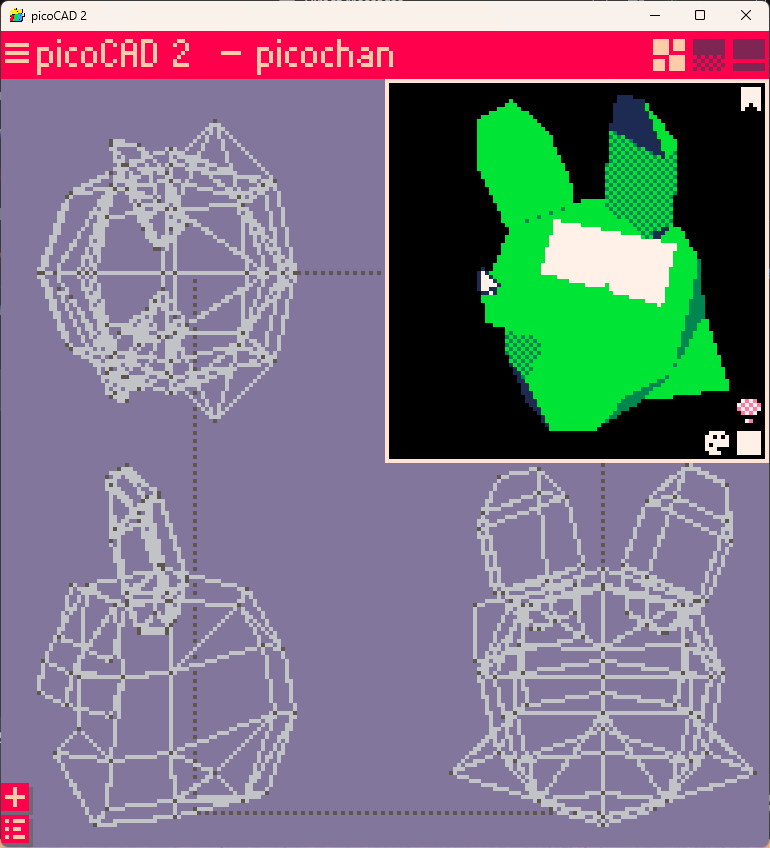 picoCHAN is an UNOFFICIAL mascot of picoCAD1/2, use of picoCHAN is accepted and encouraged for use in your projects (including this very jam)!